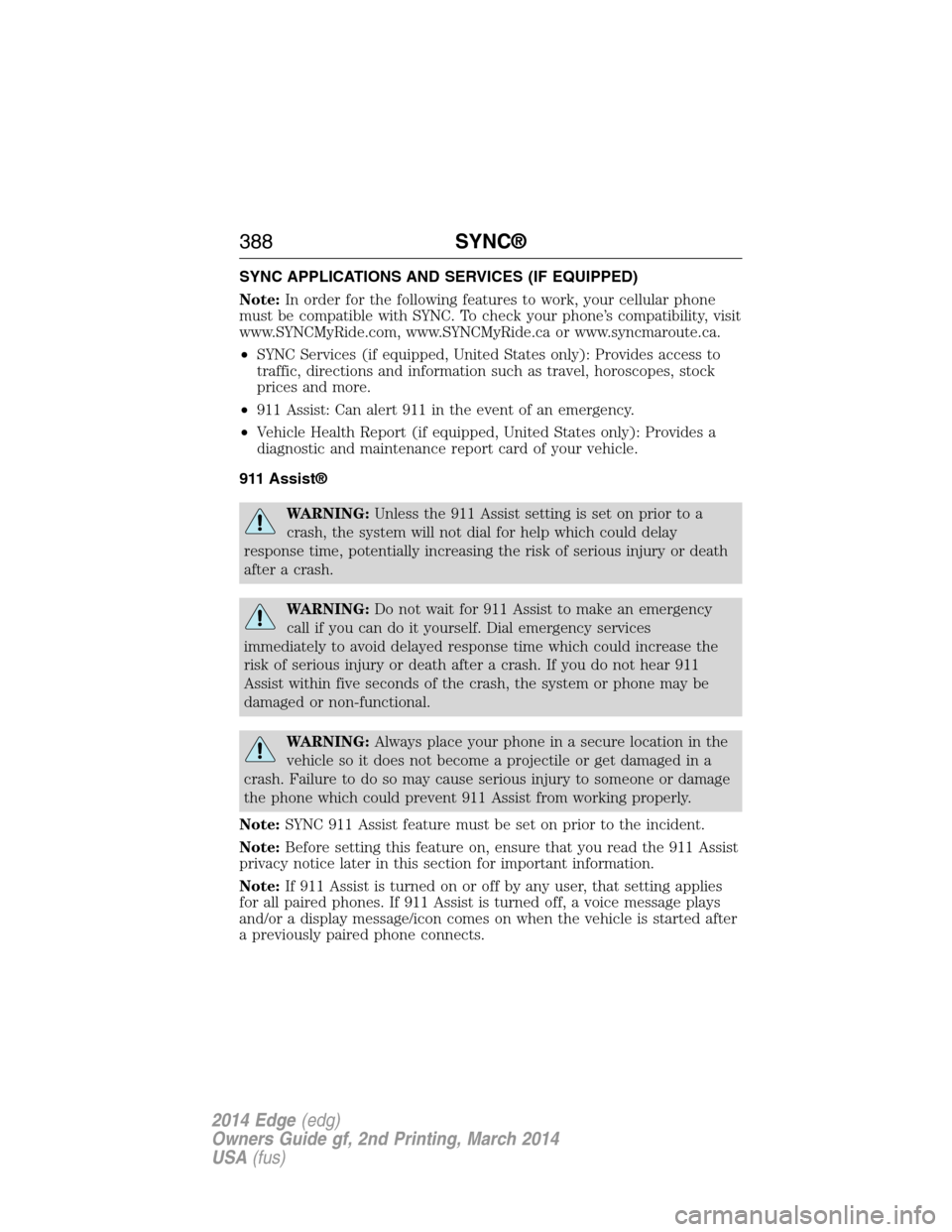 [x] Cancel search | Manufacturer: FORD, Model Year: 2014, Model line: EDGE, Model: FORD EDGE 2014 1.GPages: 540, PDF Size: 7.52 MB