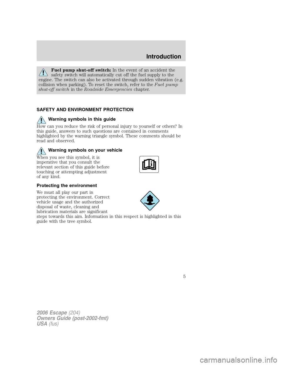 FORD ESCAPE 2006 1.G Owners Manual
