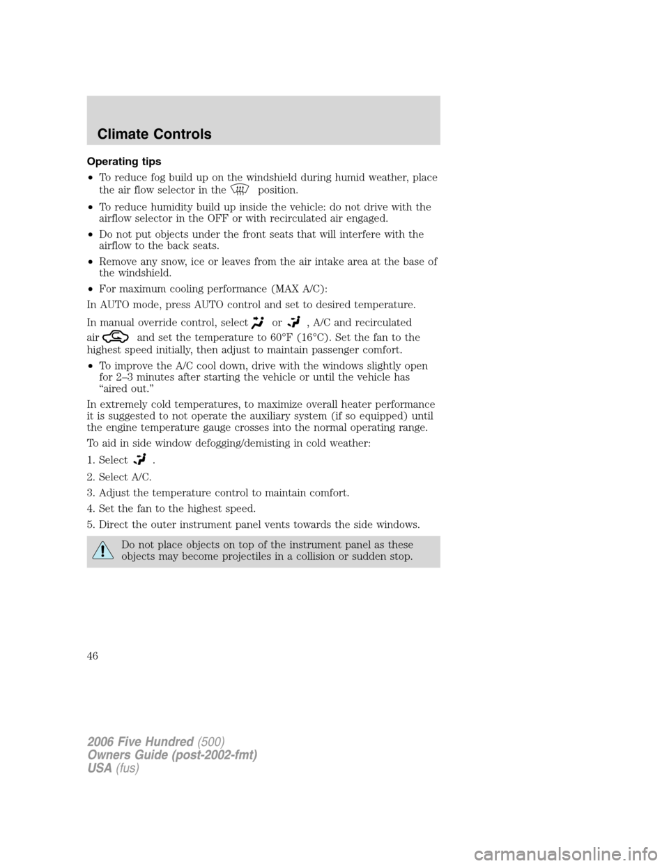 [x] Cancel search | Manufacturer: FORD, Model Year: 2006, Model line: FIVE HUNDRED, Model: FORD FIVE HUNDRED 2006 D258 / 1.GPages: 280, PDF Size: 2.43 MB