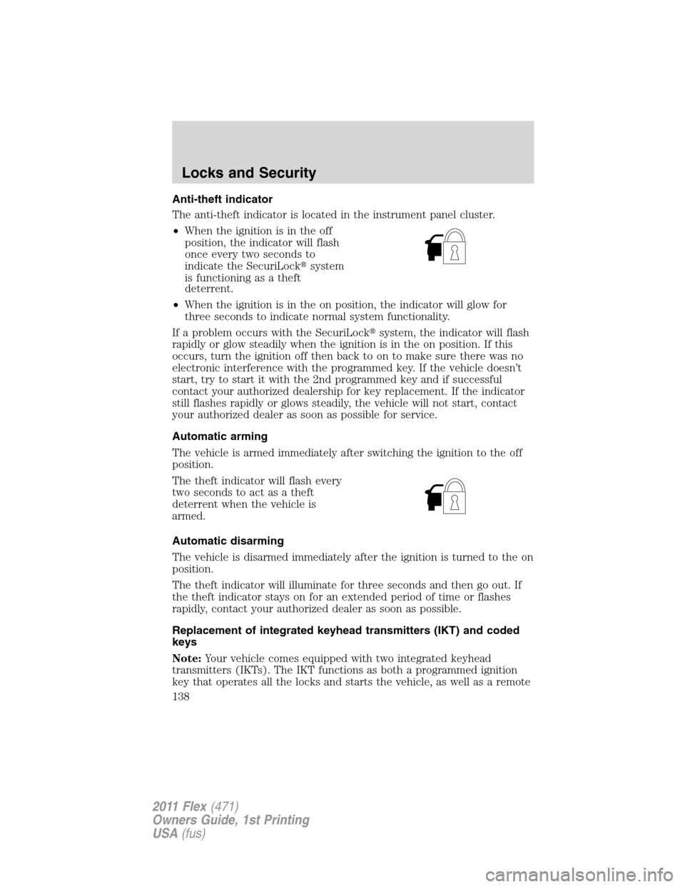 integrated keyhead transmitter). The theft indicator light will illuminate
