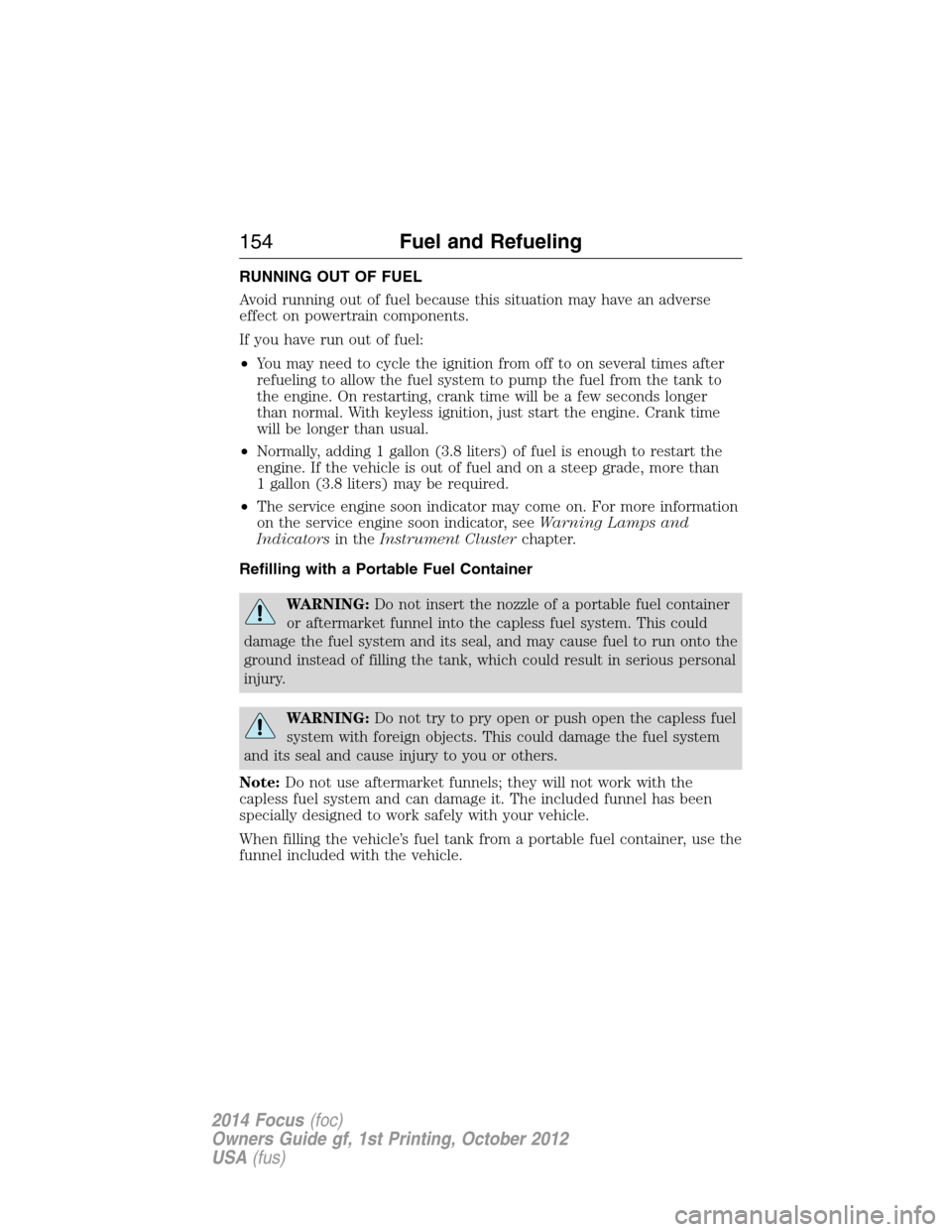 fuel cap FORD FOCUS 2014 3.G Owners Manual