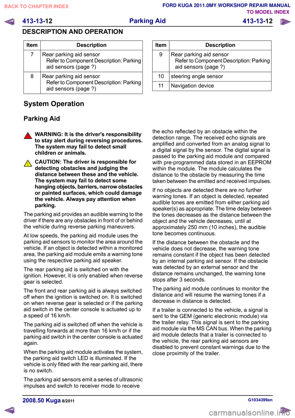 [x] Cancel search | Manufacturer: FORD, Model Year: 2011, Model line: KUGA, Model: FORD KUGA 2011 1.GPages: 2057