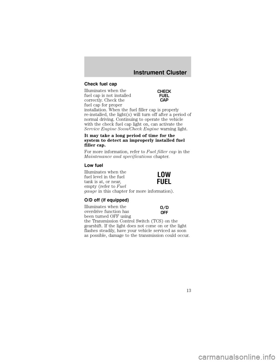Check fuel capLow tire warning