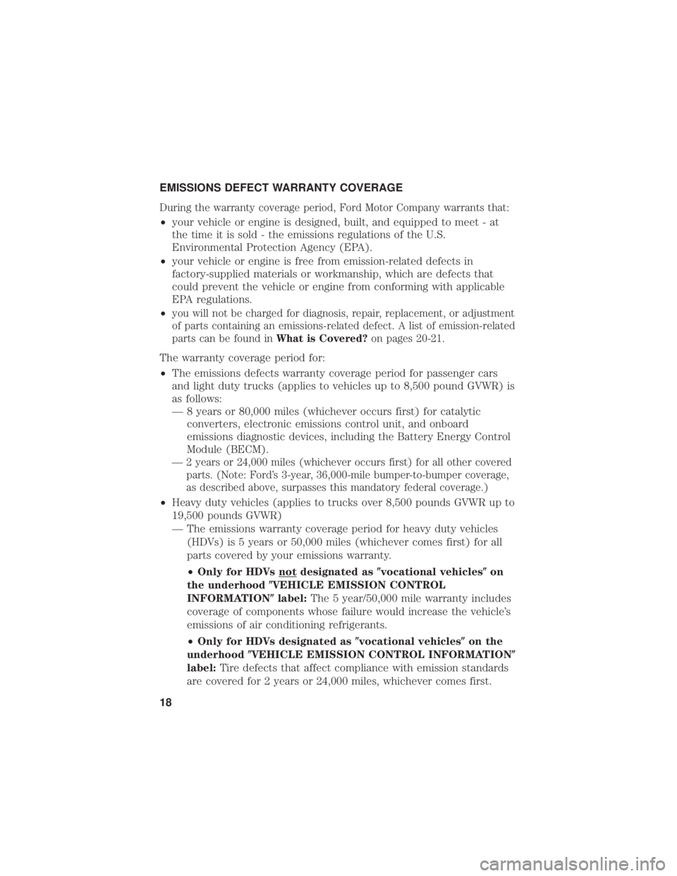 Ford must warrant the emission control system on your vehicle for the