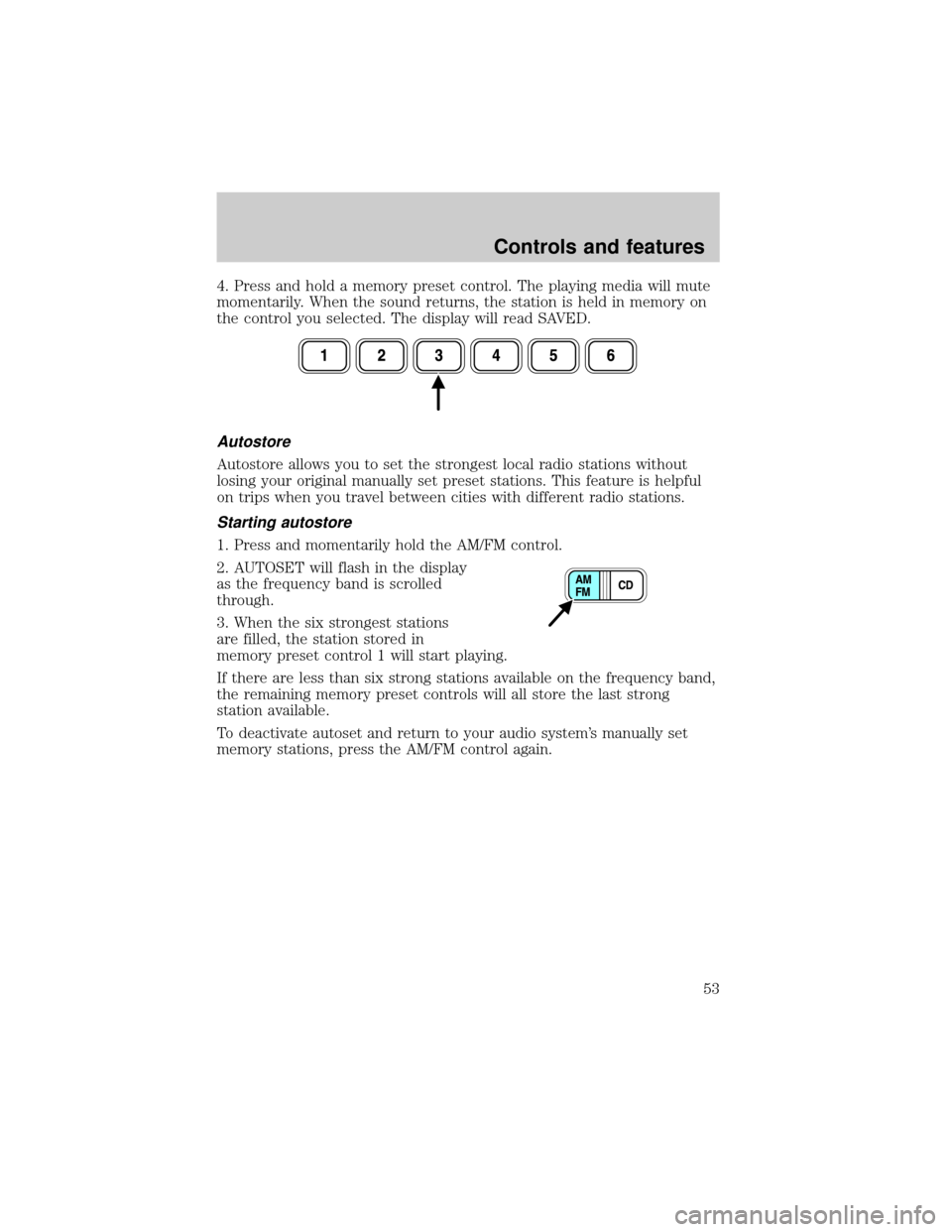 controls can be used to select up to six preset AM stations and twelve