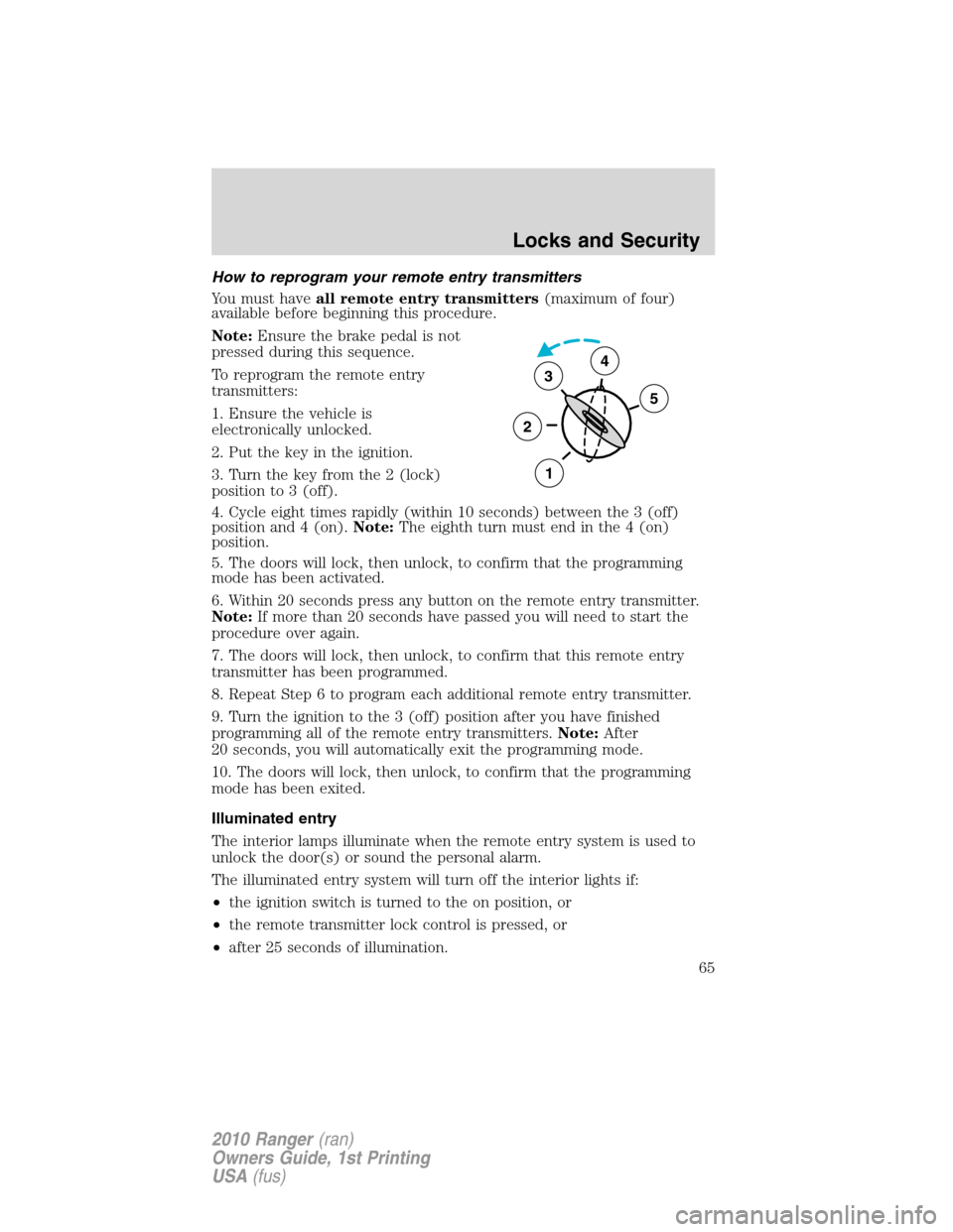 FORD RANGER 2010 2.G Repair Manual How to reprogram your remote entry transmitters