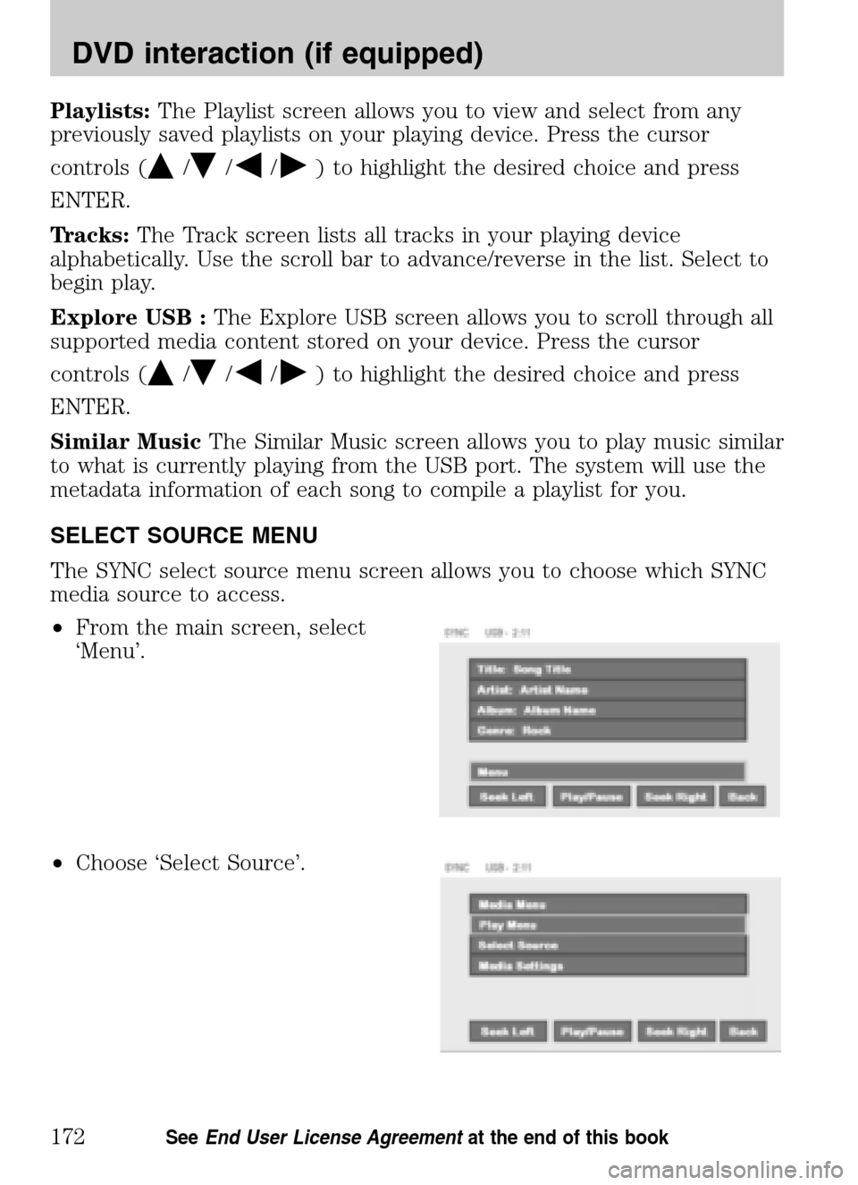 Play Menu: Choose how to play your SYNC USB media. Access menu