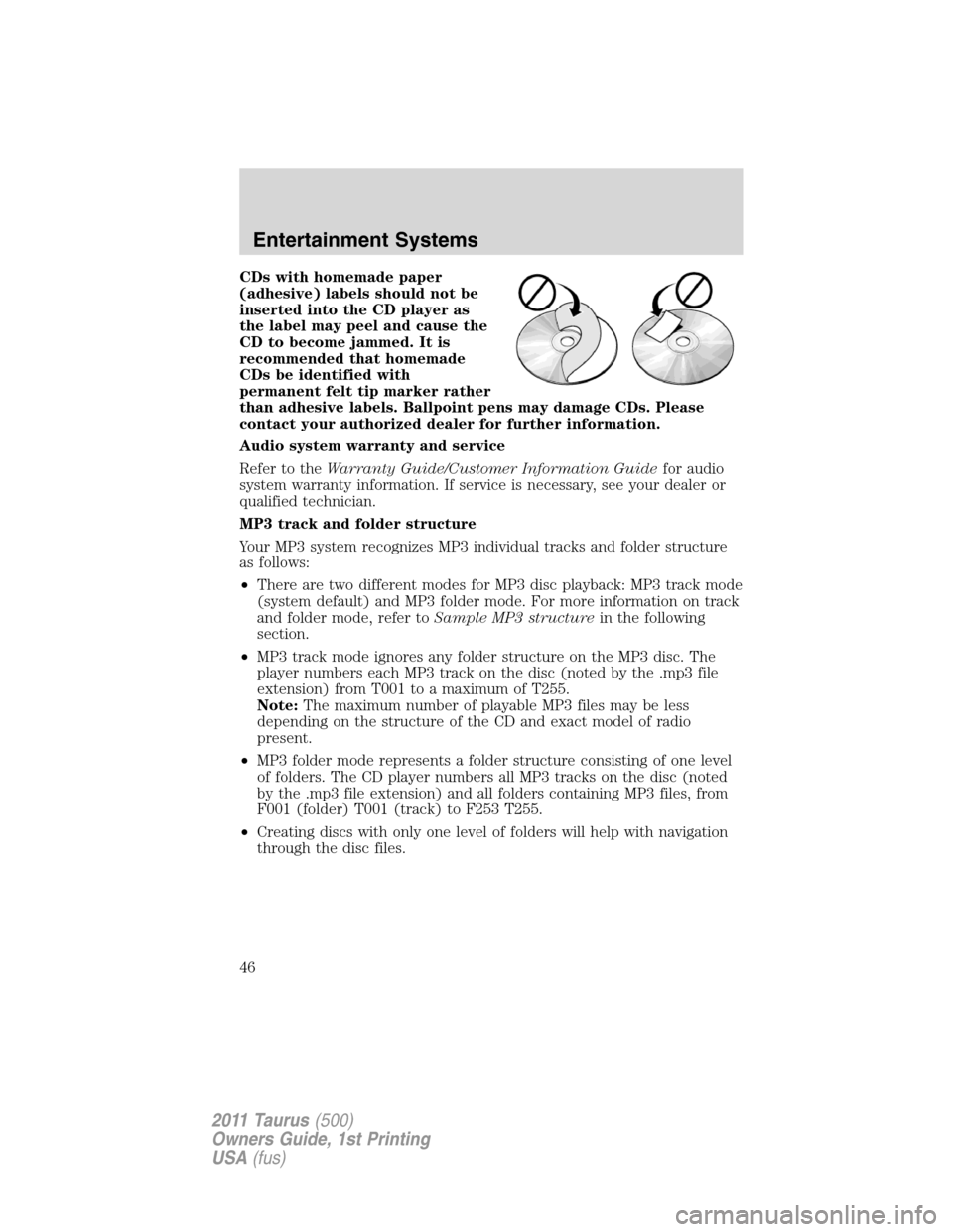 FORD TAURUS 2011 6.G Service Manual CD/CD player care