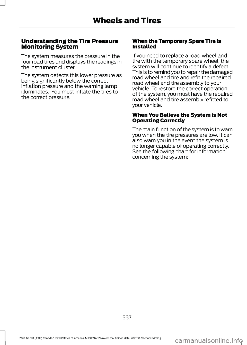 2021 Transit (TTH) Canada/United States of America, MK3J 19A321 AA enUSA, Edition date: 202010, Second-Printing Wheels and Tires