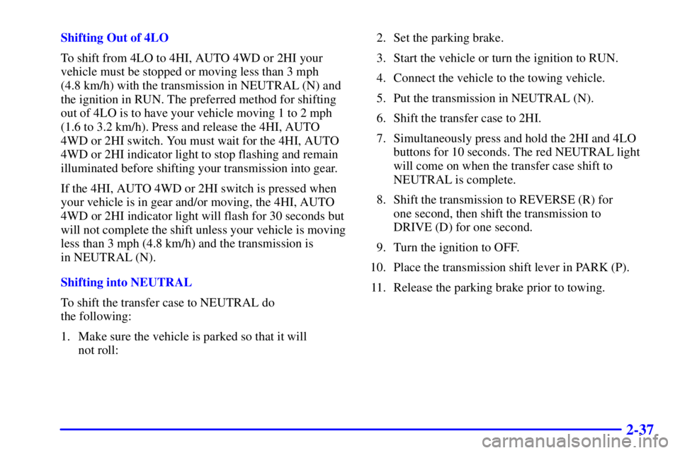 To shift from 4LO to 4HI, AUTO 4WD or 2HI your