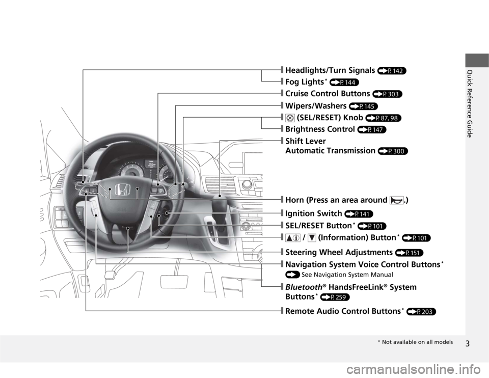 2Safe Driving P. 25For Safe Driving P. 26 Seat Belts P. 30 Airbags P. 392Instrument Panel P. 71Indicators P. 72 Gauges and Displays P. 862Controls P. 107Setting the Clock P. 108 Locking and Unlocking the Doors P. 110