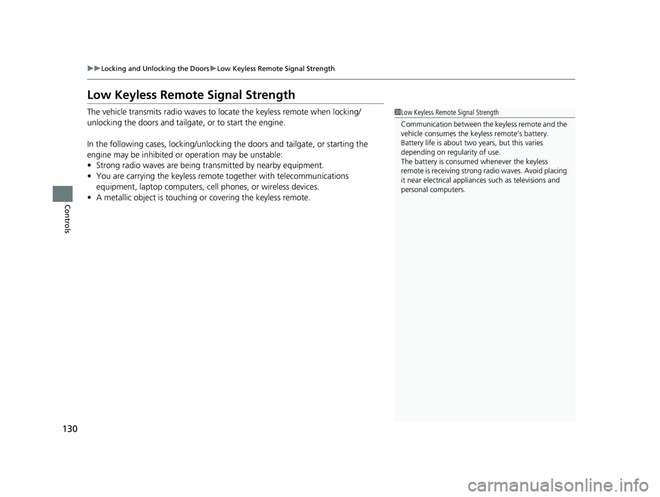 Low Keyless Remote Signal Strength .... 130Locking/Unlocking the Doors from the Outside .......................................... 131