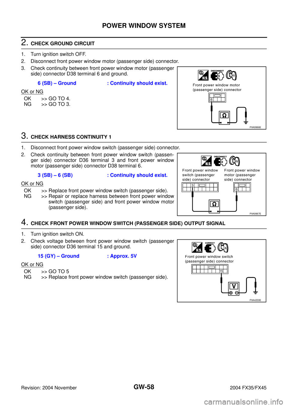[x] Cancel search | Manufacturer: INFINITI, Model Year: 2004, Model line: FX35, Model: INFINITI FX35 2004Pages: 4449, PDF Size: 99.66 MB