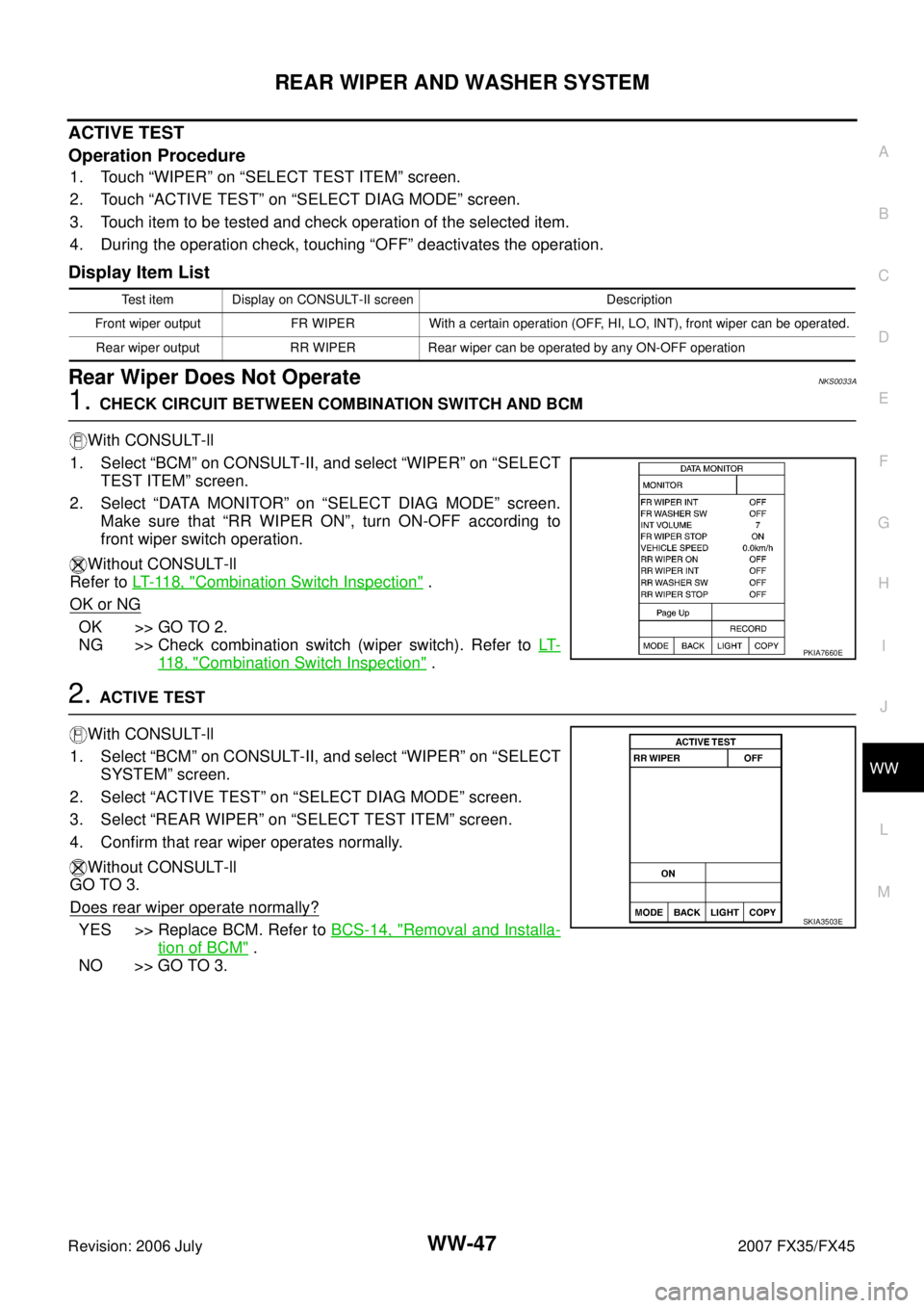 INFINITI FX35 2007  Service Manual WW-50