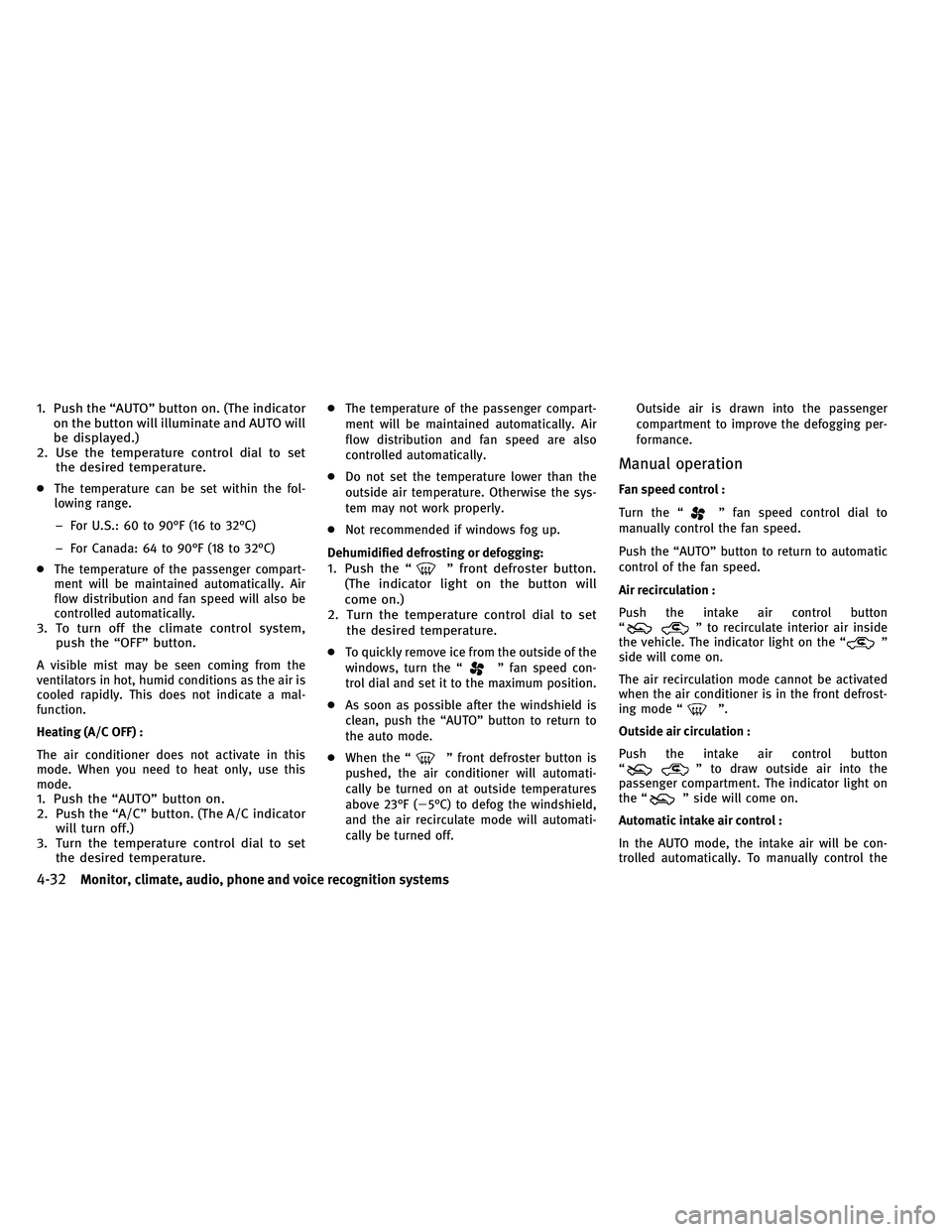 above 23°F (5°C) to defog the windshield,