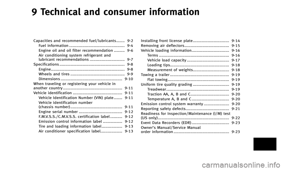 Vehicle identification ......................................... 9-11 Vehicle Identification Number (VIN) plate ....... 9-11