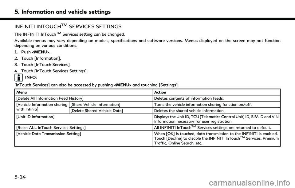 ![INFINITI Q60 2022 Owners Manual 5. Information and vehicle settings