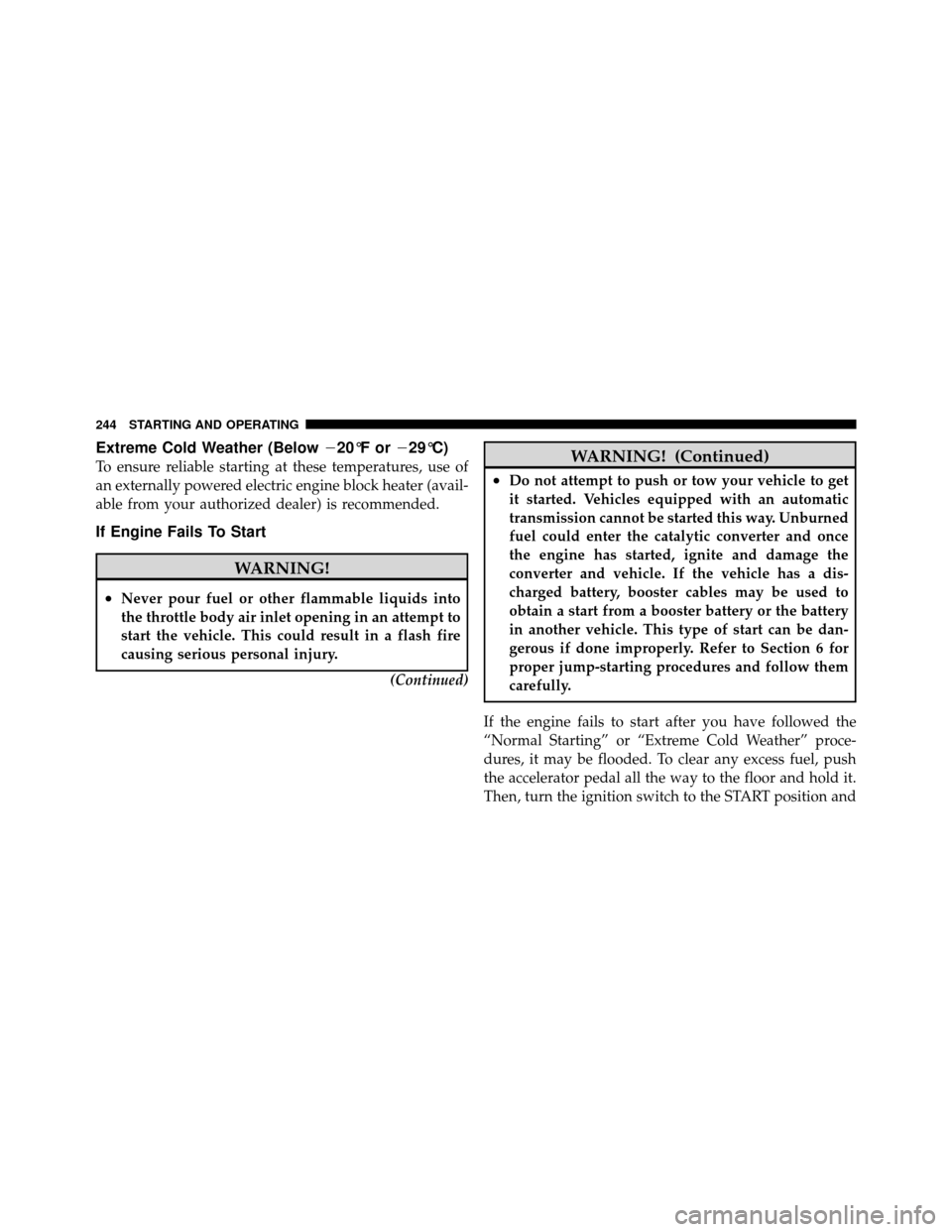 JEEP COMMANDER 2010 1.G Owners Manual Extreme Cold Weather (Below20°F or29°C)