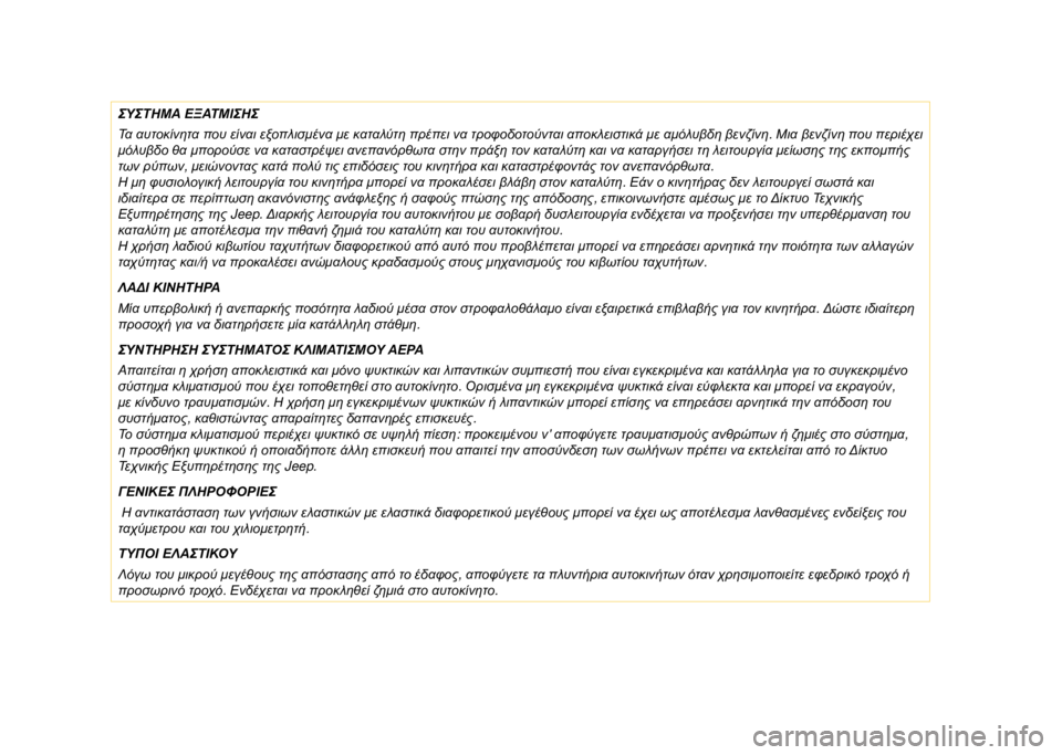 Εξυπηρέτησης της Jeep. Διαρκής λειτουργία του αυτοκινήτου με σοβαρή δυσλειτουργία ενδέχεται να προξενήσει την υπερθέρμανση του