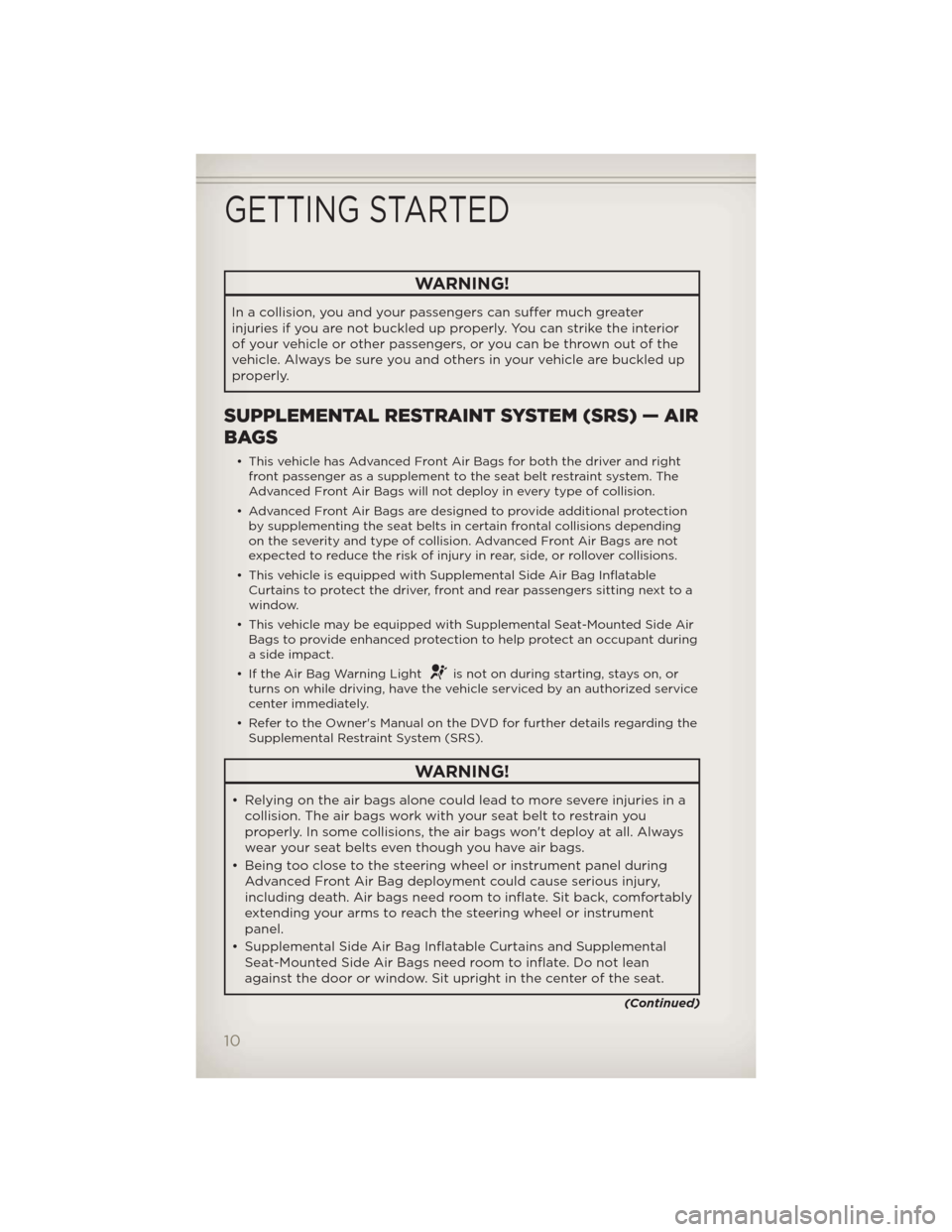 • Relying on the air bags alone could lead to more severe injuries in a