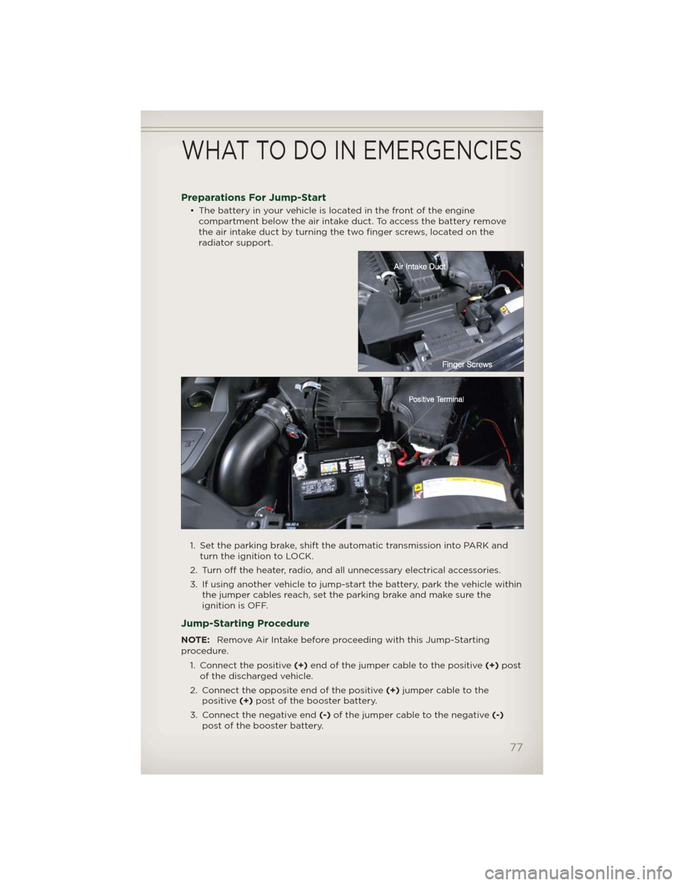 NOTE:Remove Air Intake before proceeding with this Jump-Starting