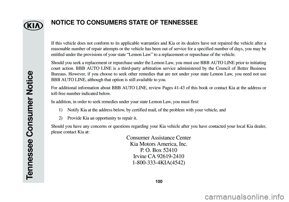 information about BBB AUTO LINE, review Pages 41-43 of this book or contact Kia at the address or\