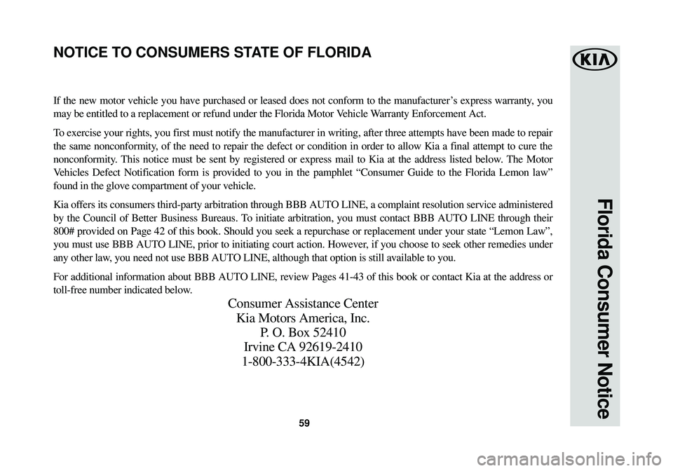 For additional information about BBB AUTO LINE, review Pages 41-43 of this book or contact Kia at the address or\