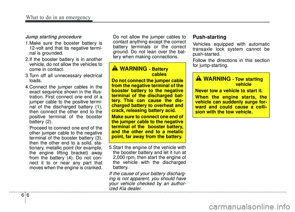 If the cause of your battery discharg-ing is not apparent, you should haveyour vehicle checked by an author-ized Kia dealer.