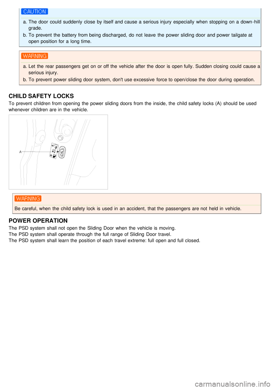be discharged and the PSDM(Power sliding door module) will not permit operation.