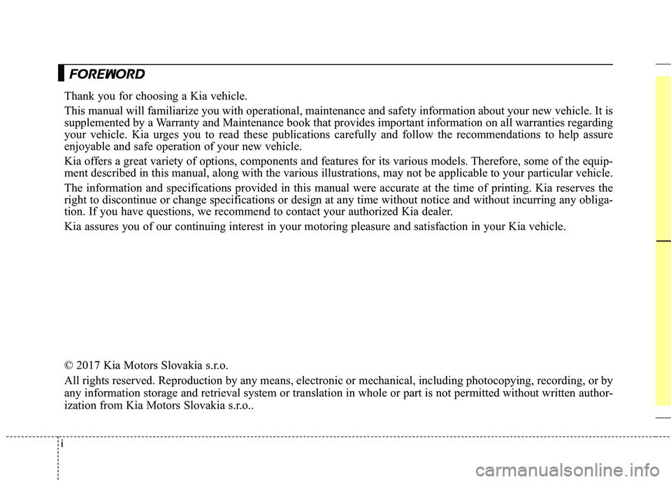 your vehicle. Kia urges you to read these publications carefully and follow the recommendations to help ass ure