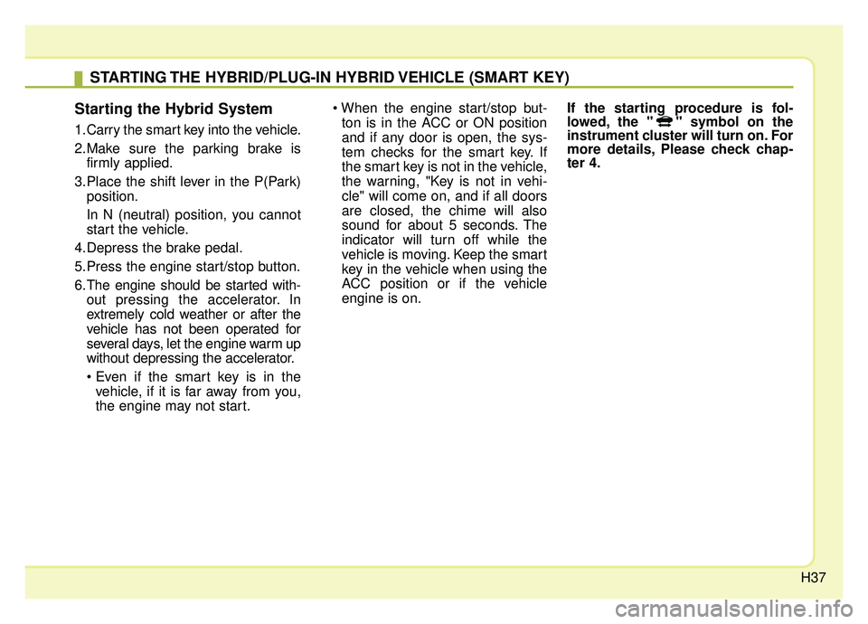 STARTING THE HYBRID/PLUG-IN HYBRID VEHICLE (SMART KEY) / H37 COMPONENTS OF THE HYBRID/PLUG-IN HYBRID VEHICLE / H39