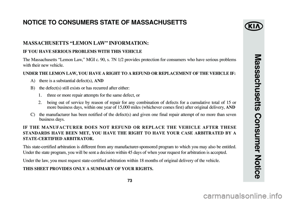 MASSACHUSETTS “LEMON LAW” INFORMATION: