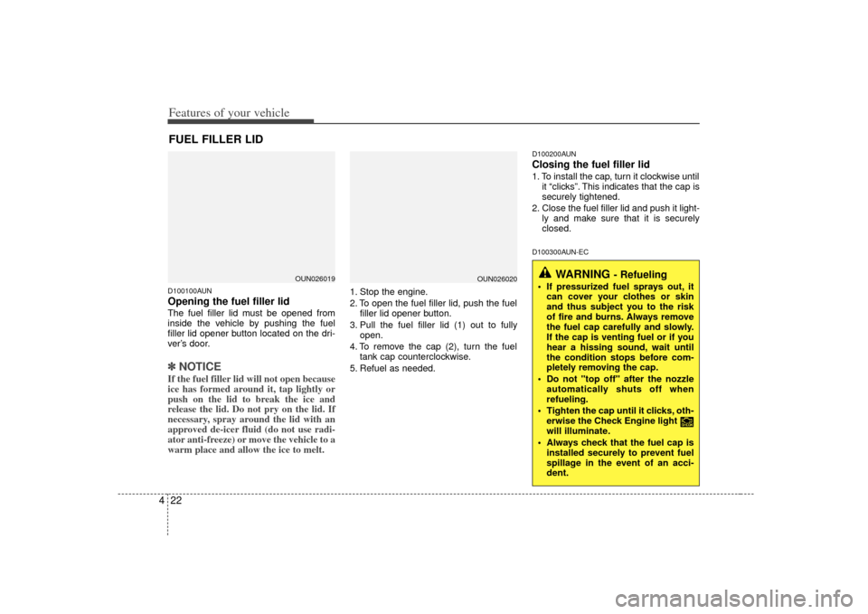 4D100100AUNOpening the fuel filler lidThe fuel filler lid must be opened from