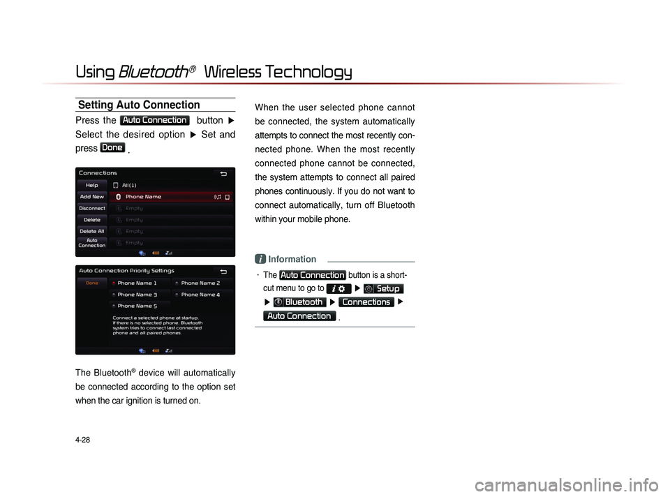 Connection Sets Bluetooth® device auto connec-