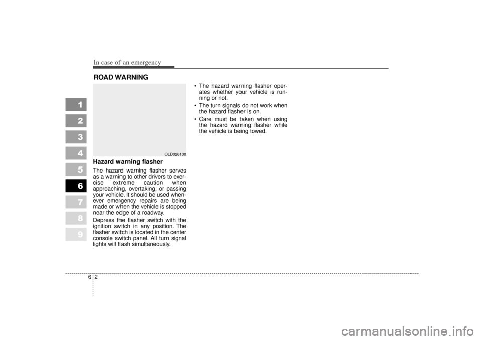 In case of an emergency26ROAD WARNING Hazard warning flasher The hazard warning flasher serves