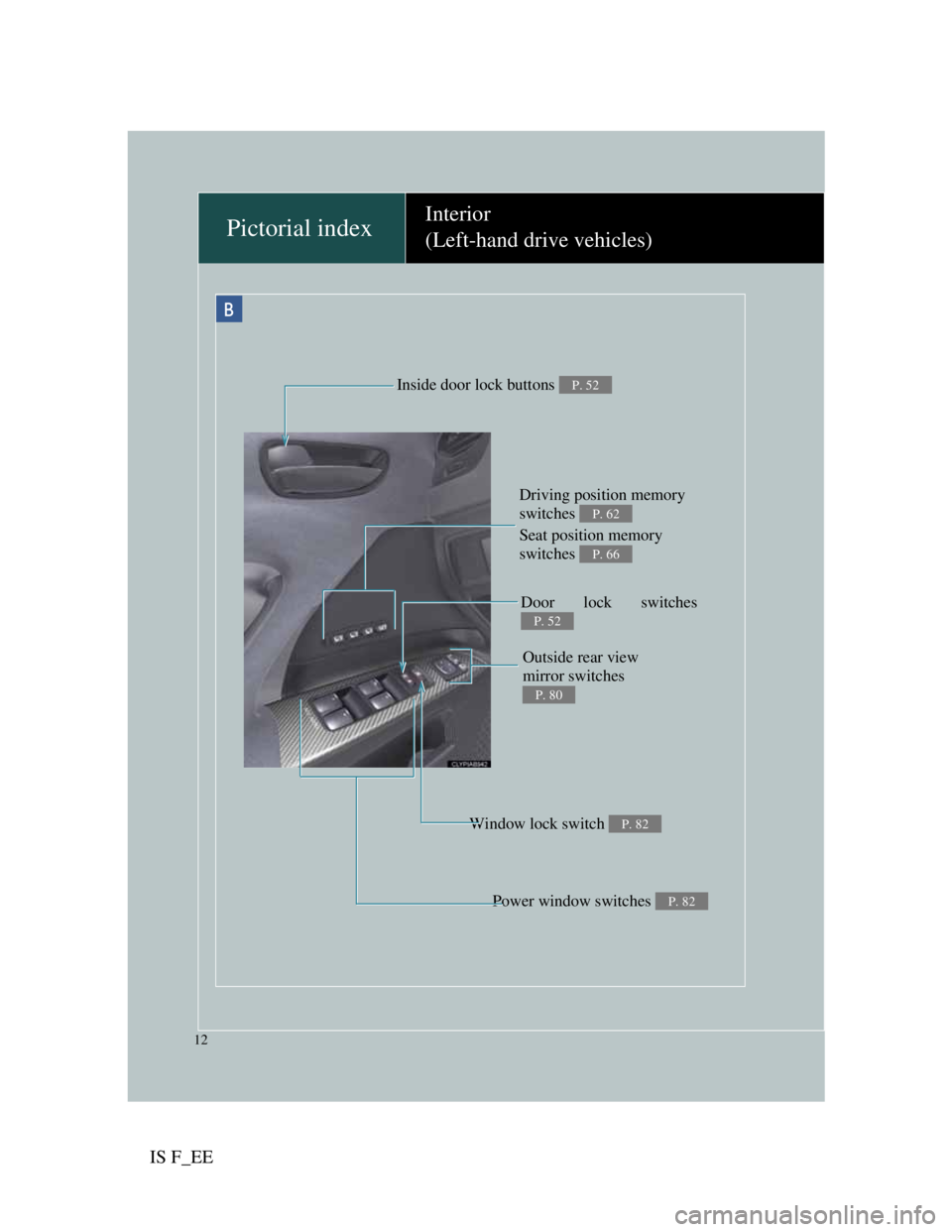 Inside door lock buttons P. 52