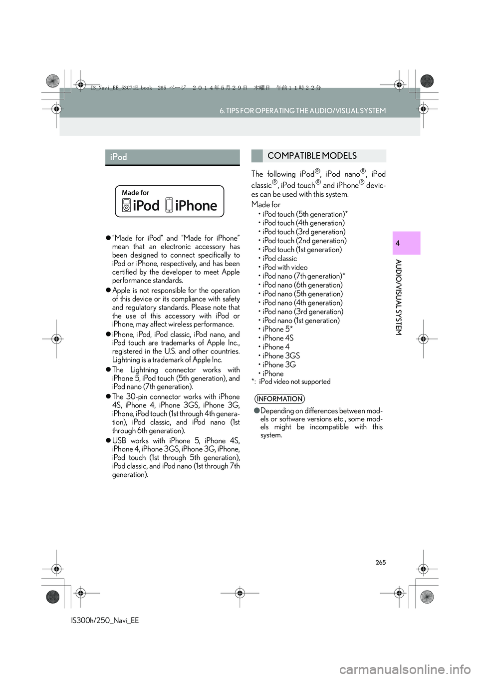 Lexus IS250 2014 Navigation Manual