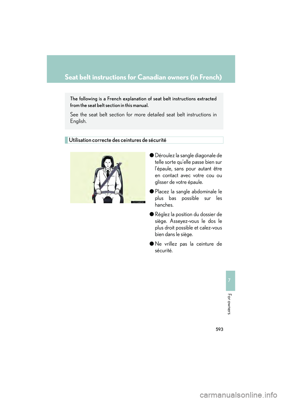 Seat belt instructions for Canadian owners