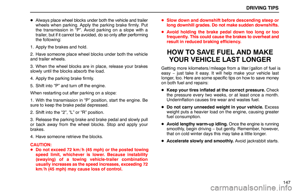 147 Always place wheel blocks under both the vehicle and trailer