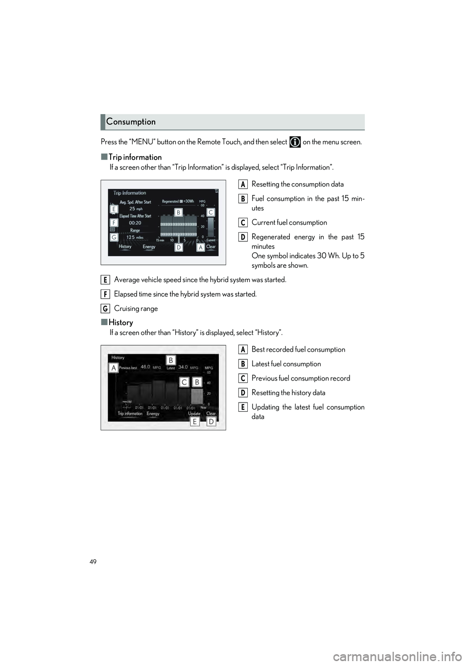 The status of your hybrid system and fuel consumption information can be displayed on
