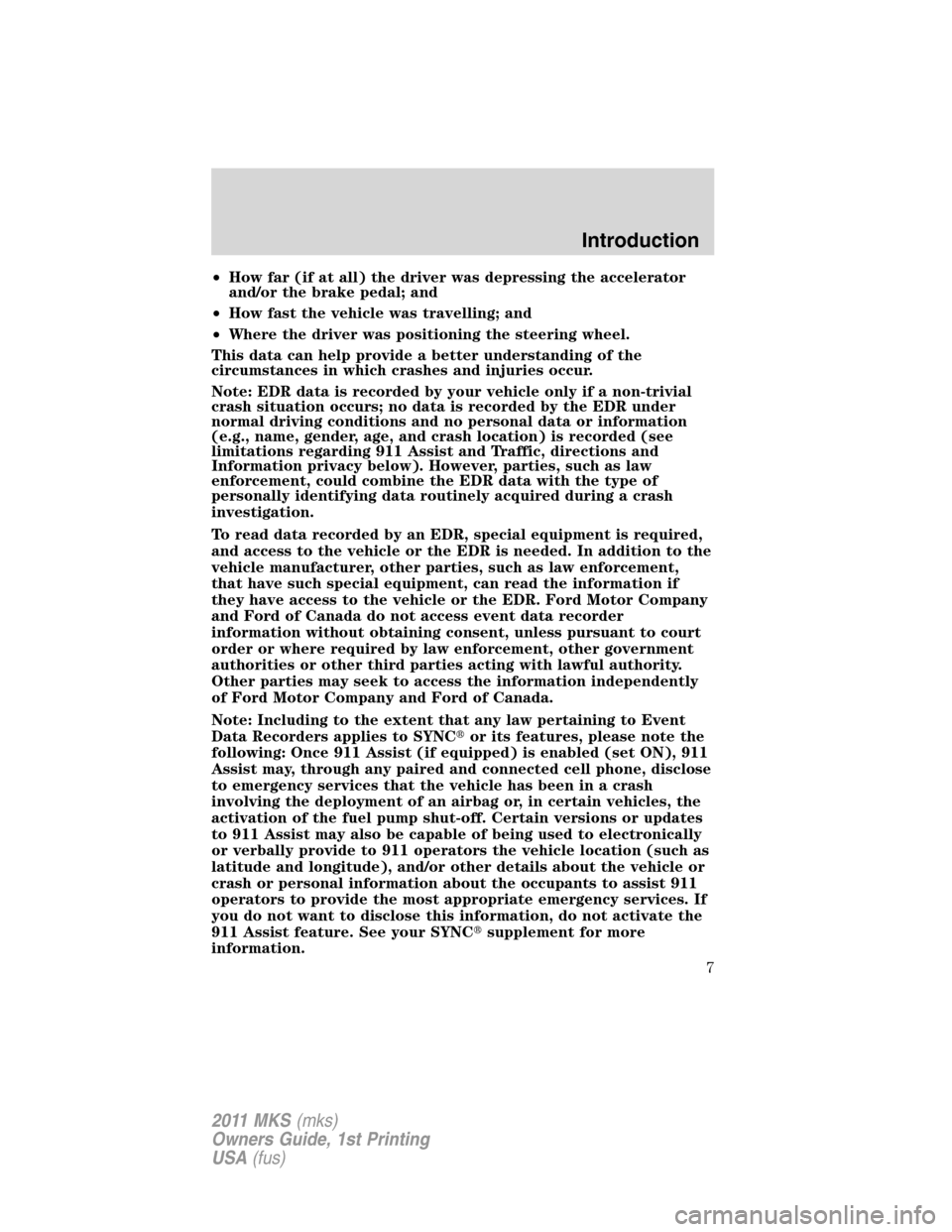 LINCOLN MKS 2011 Owners Manual