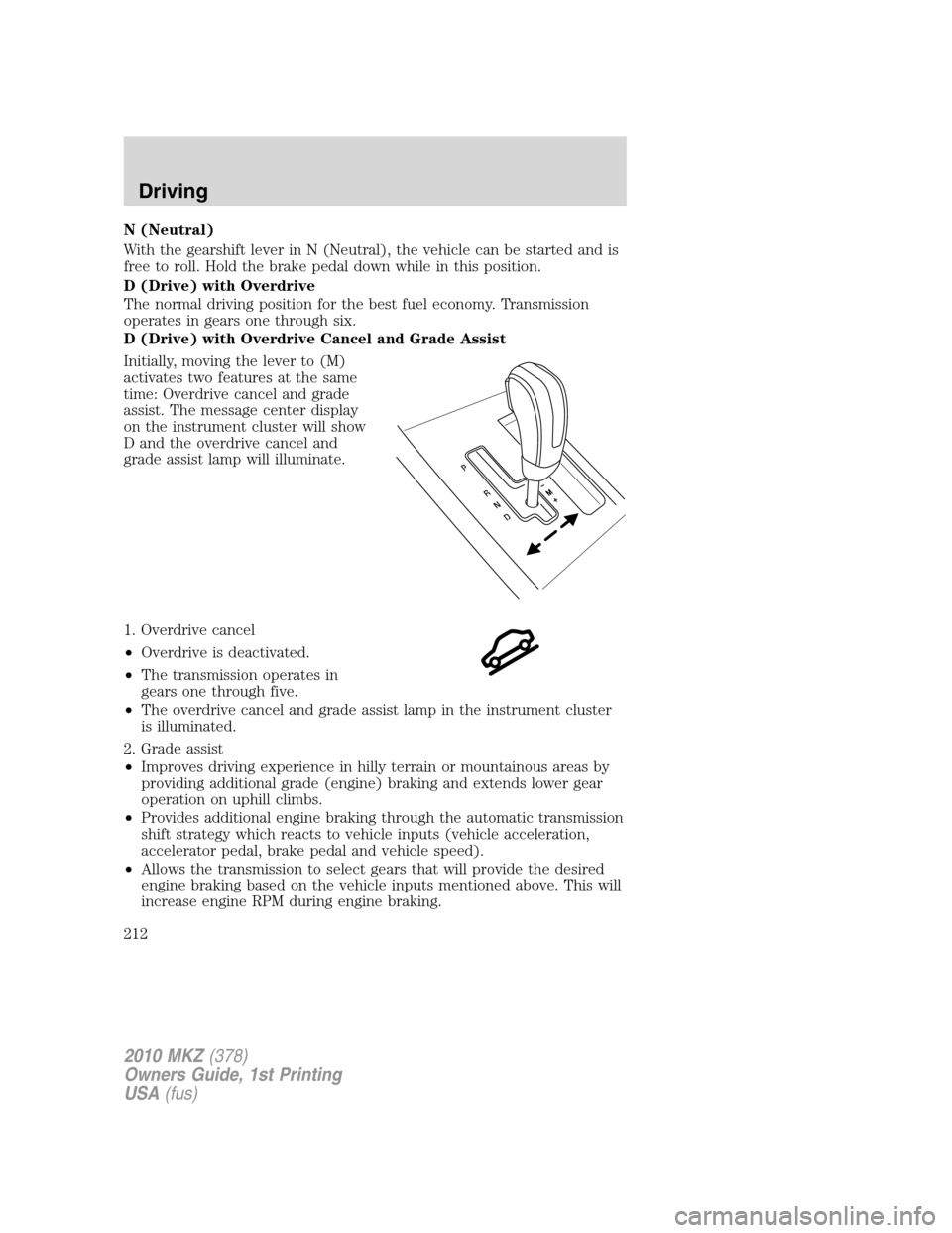 automatic transmission LINCOLN MKZ 2010 Owners Manual