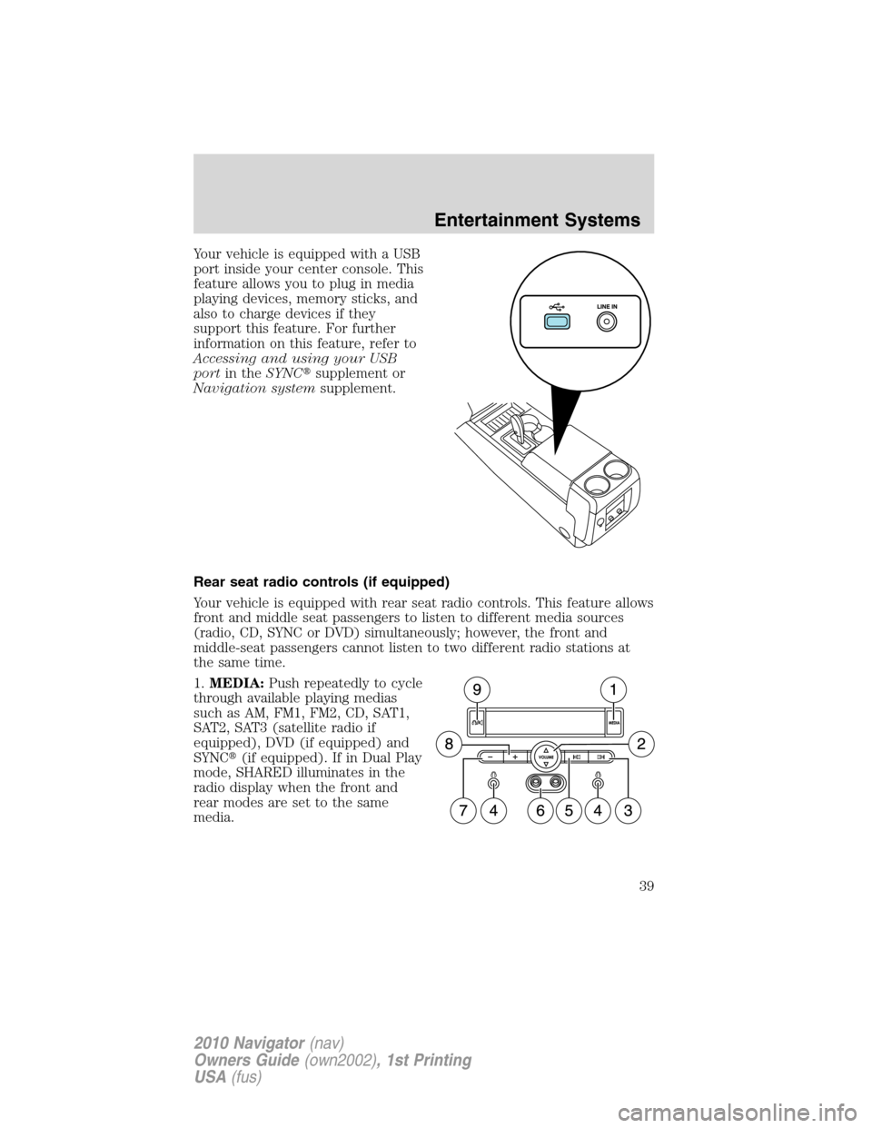 LINCOLN NAVIGATOR 2010 Owners Guide Your vehicle is equipped with a USB
