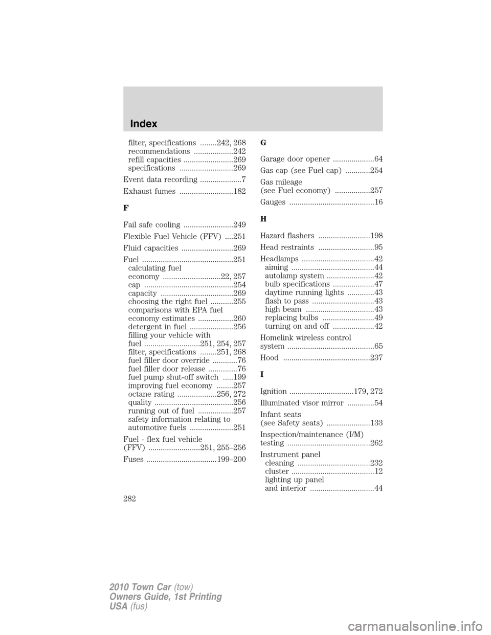 fuel filter LINCOLN TOWN CAR 2010 Owners Manual