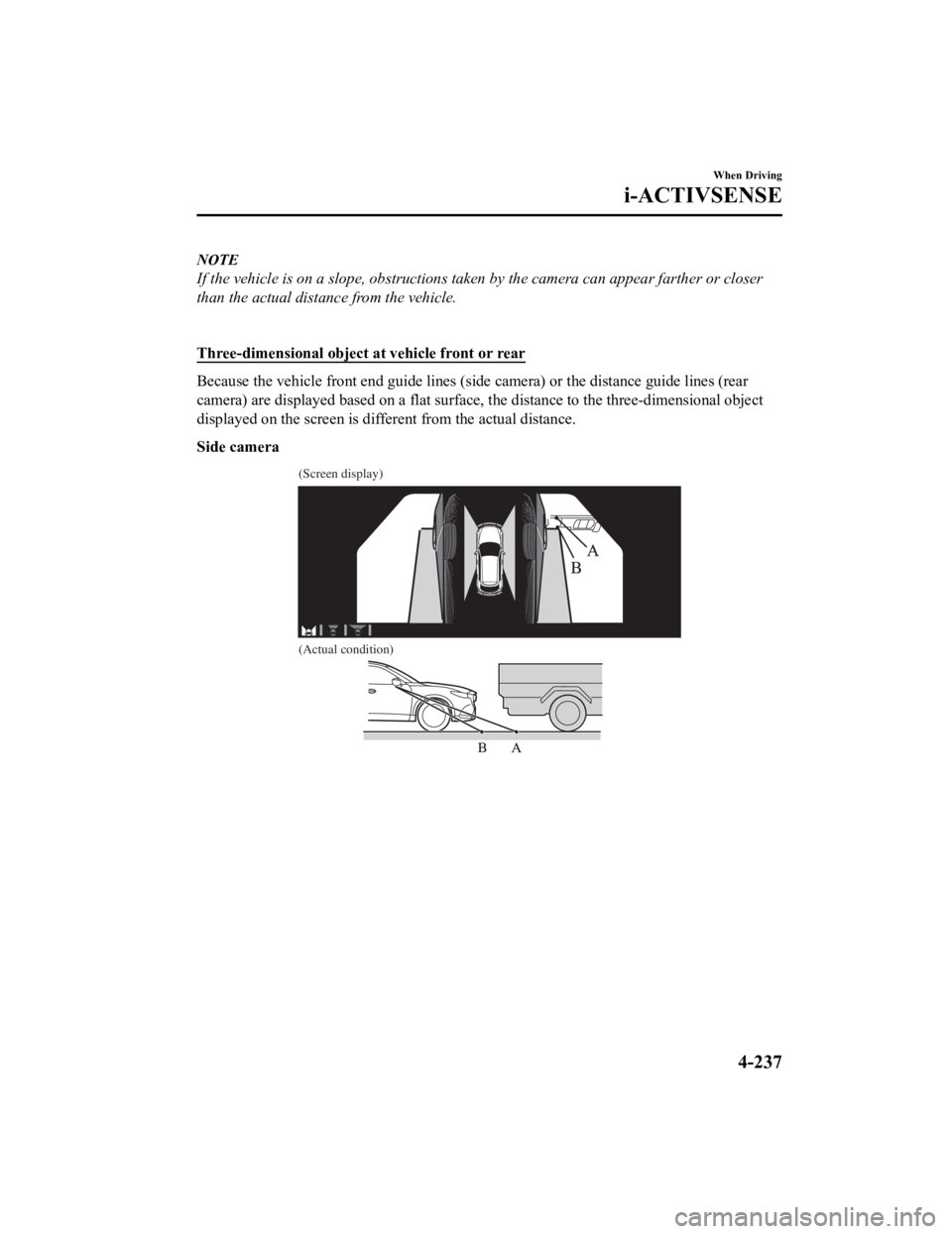 If the vehicle is on a slope, obstructions taken by the camera can appear farther or closer