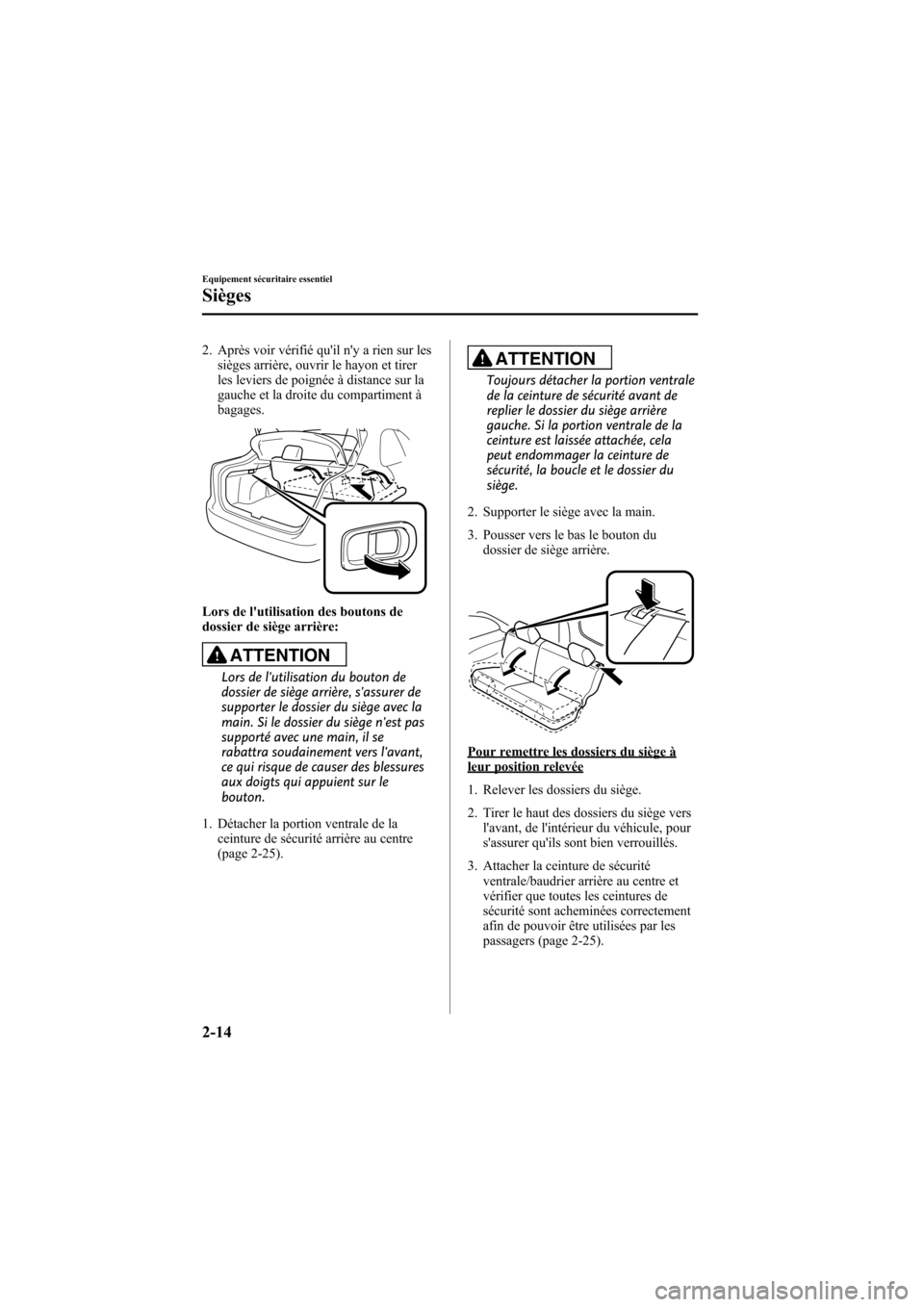 Pour replier des dossiers des siègesarrière et faire coulisser vers l'avant lescoussins de siège