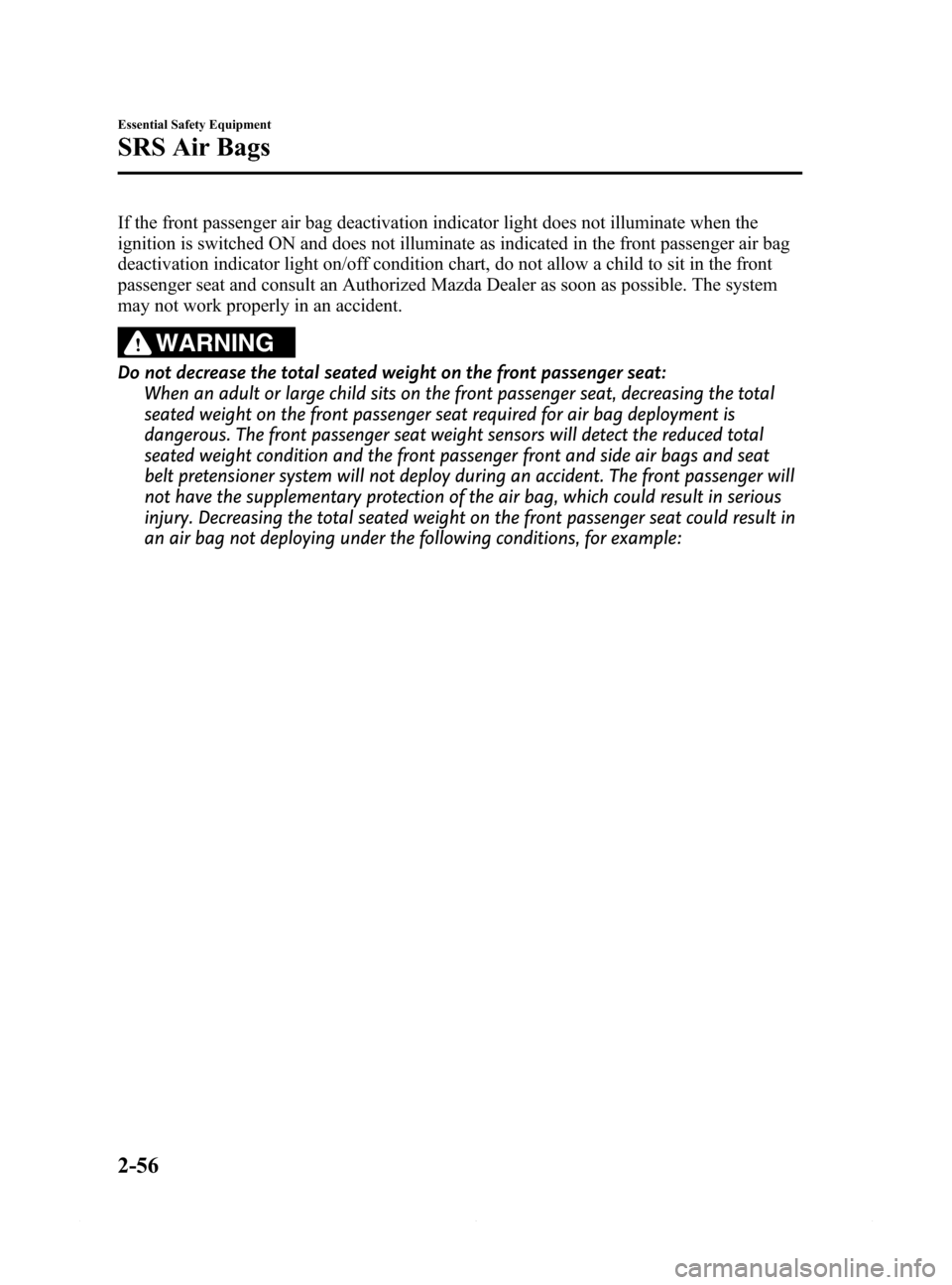 the front passenger seat as far back as possible. Consult an Authorized Mazda Dealer as soon as