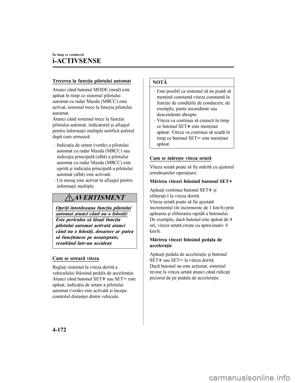 cu radar Mazda (MRCC) să fie anulat automat altfel motorul s-ar putea cala.