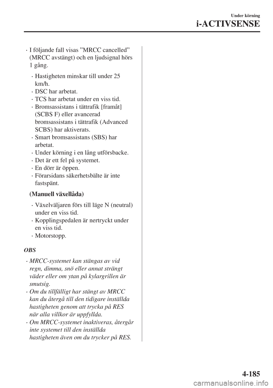•Avståndshållaren kan inte användas om fordonet före kör fortare än den inställda