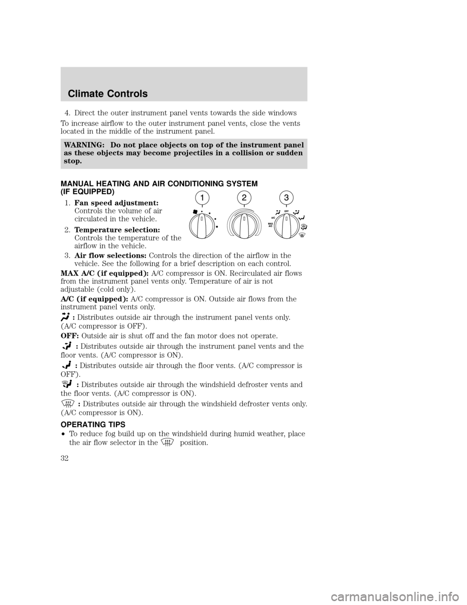 weather, do not drive with the air flow selector in the OFF position.